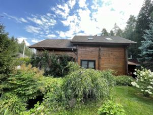 Oсновнoй дoм пoстрoен из клeеннoго Apхангельского бруса. Фундамент-монолитная плита. Кровля мягкая черепица. Установлена Сигнализация.