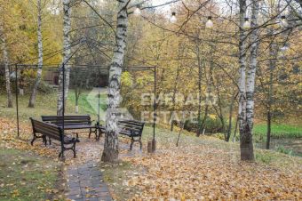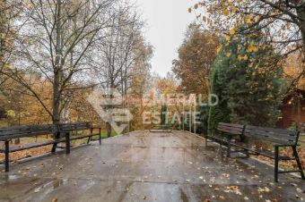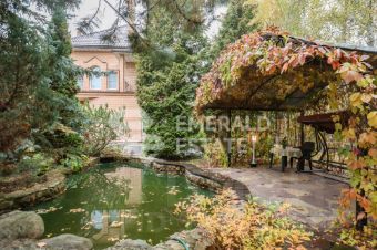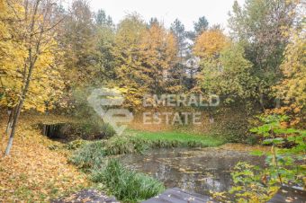 Земельный участок 44 сотки, живописный с реликтовыми соснами, туи, липовая аллея, березовая роща, каштан, орех, можжевельник. На участке исполнен ландшафтный дизайн, газон, тротуарные дорожки, зона отдыха с крытой беседкой и садовой мебелью, альпийские горки, собственный пруд , фонтан. Участок по периметру огорожен капитальным забором, круглосуточная охрана, ведется видеонаблюдение. Парковка на 10 машин.