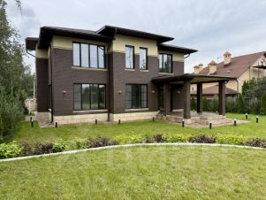 На просторном участке выполнен ландшафтный дизайн, участок правильной формы, засеян газоном. Вдоль забора высажены туи и ели. По периметру дома установлено уличное освещение. У дома оборудована площадка на 2 автомобиля.