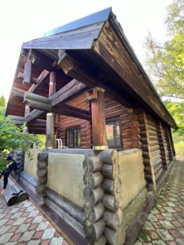 На участке дополнительно имеется деревянная баня 40 м2 с сауной и мини-бассейном с комнатой отдыха со встроенной кухней и камином на первом этаже и мансардой.