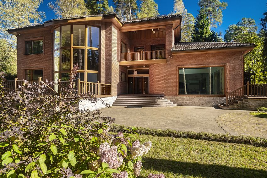 - Основной дом из кирпича - 3 этажа (с цоколем) и мансардный этаж общей площадью 955,5 квм.