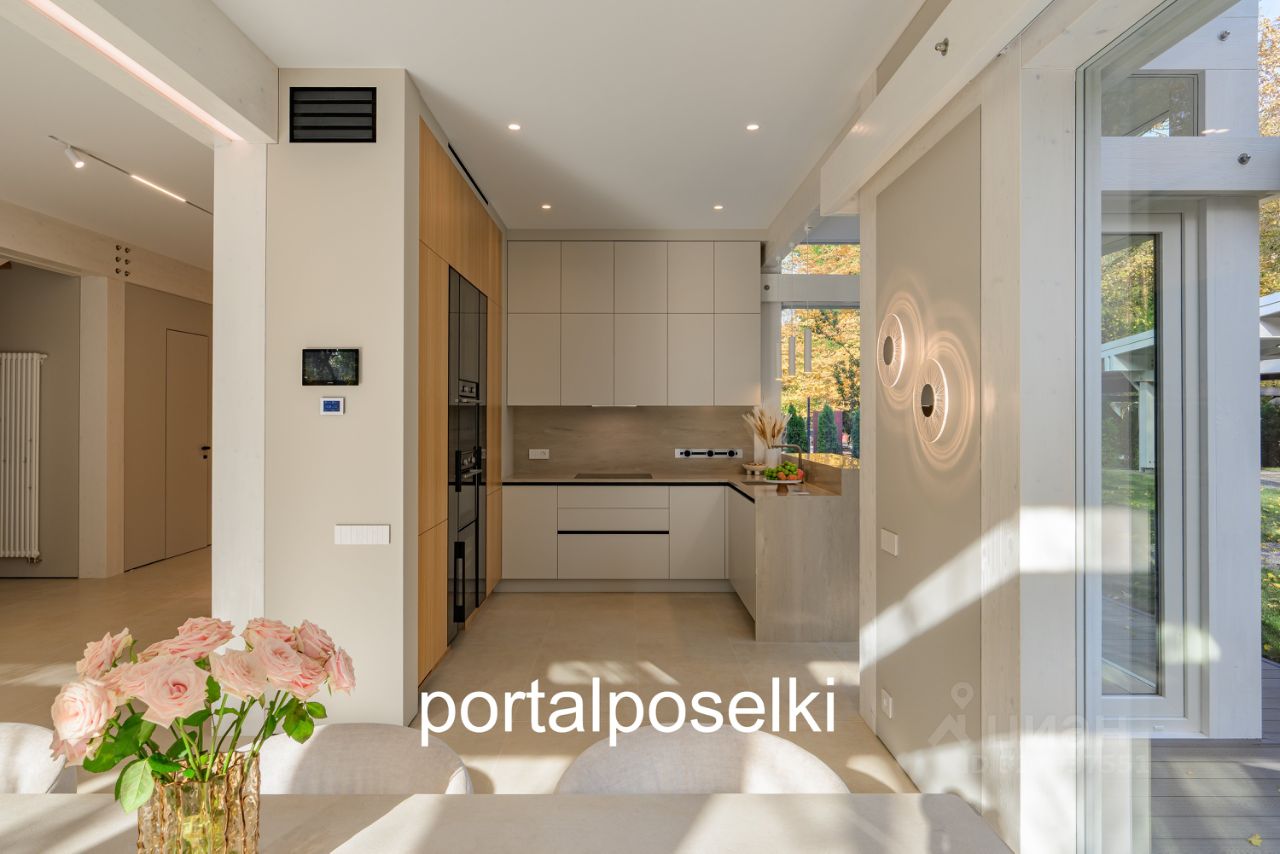 Высококачественная отделка, эксклюзивное цветовое решение стен, установлена современная кухня в натуральном шпоне, полностью укомплектованная шведской техникой Asko, вытяжкой Elica Hidden, встроенной док-станцией с моющим роботом-пылесосом и беспроводной зарядкой для телефона.