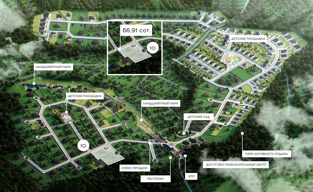 Участок 10 площадью 66,91 соток расположен в престижном и благоустроенном клубном посёлке Папушево Парк, всего 23 км от Москвы и 35 минут до центра города. Сектор полностью заселён — отсутствуют строительные работы поблизости. Инфраструктура и въезд в посёлок расположены в непосредственной близости.
