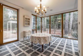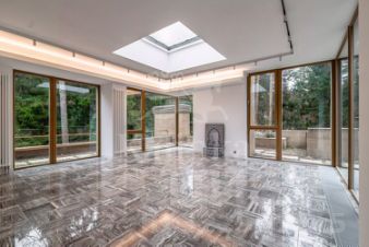 1 этаж: прихожая, холл, гардеробная, с/у, гостиная с камином, зимний сад, столовая, кухня, терраса, бассейн, сауна, хамам, душ, гостевая спальня с ванной комнатой;