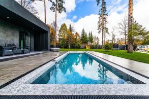 На фронтальной площадке подогреваемый бассейн 9 Х 3 с детской зоной, отделан испанской противоскользящей мозаикой, полностью оборудован , подогрев газовым котлом Vaillant. В доме канальное кондиционирование на 1 эт и сплит на 2 эт.