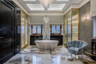 Загородный дом в престижном коттеджном поселке "Довиль", расположенном в 10 км от Москвы, в центре поселка — живописное лесное озеро.