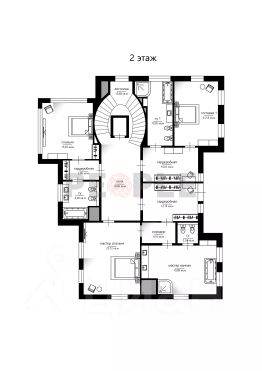 2-й этаж: 3 спальни с ванными и гардеробными комнатами.