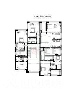 2-й этаж: холл, мастер-спальня с ванной и гардеробной, 3 спальни с ванными и гардеробными, спальня с ванной, детская игровая, тренажерный зал