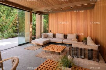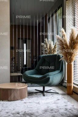 Интерьер выполнен в дорогом современном стиле с элементами минимализма и мягкой геометрии. Светлые тона, натуральные материалы, встроенное освещение и панорамные окна создают атмосферу уюта и визуальной лёгкости. Пространства наполнены воздухом, а мебель подобрана с акцентом на комфорт и функциональность - от мягких диванов до лаконичных систем хранения.