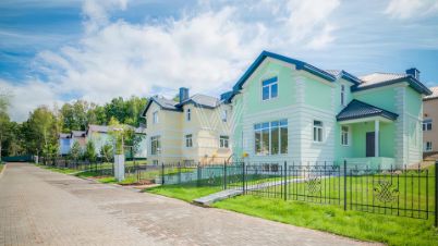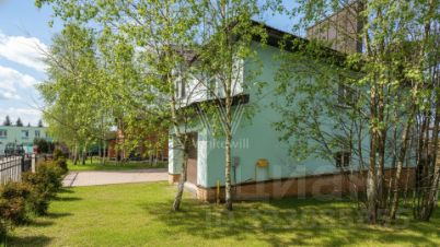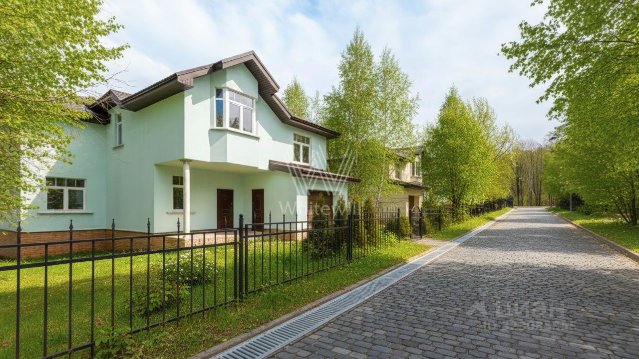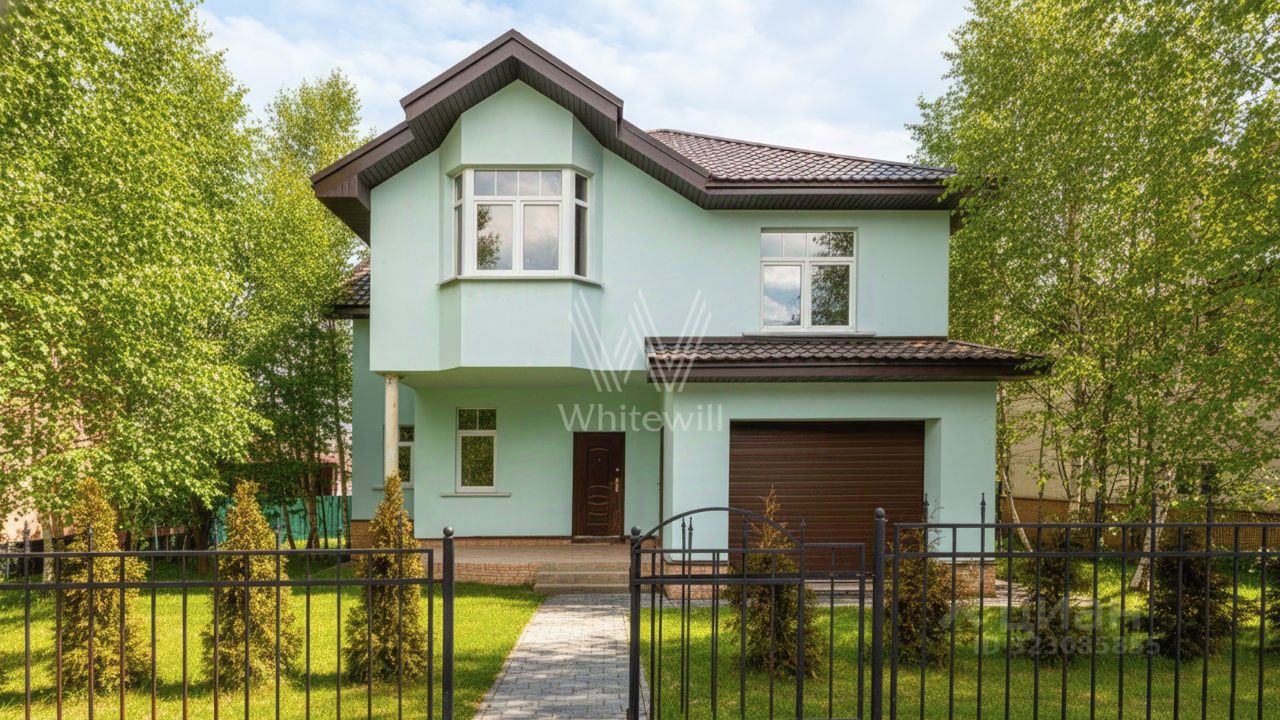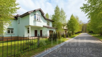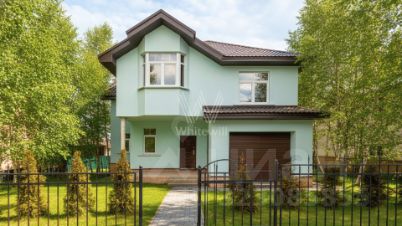 Усово-8. Просторный загородный дом в неоклассическом стиле площадью 330 м² построен на полевом участке 8 соток. Фасад облицован штукатуркой нежно-зеленоватого оттенка. Коттедж представлен без отделки. Свободная планировка позволяет спланировать 3-4 спальни, гостиную, кухню, сауну, гардеробные и необходимые технические помещения. Предусмотрен встроенный гараж. На участке с молодыми березами высажены хвойные деревья.