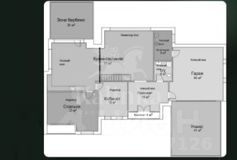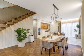 1 этаж: прихожая, холл, гостиная, продуманная кухня с современной бытовой техникой производителей премиум-класса, выходом на шикарную террасу с зоной для барбекю, гостевая спальня, кабинет, санузел, котельная с отдельным входом.