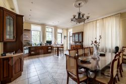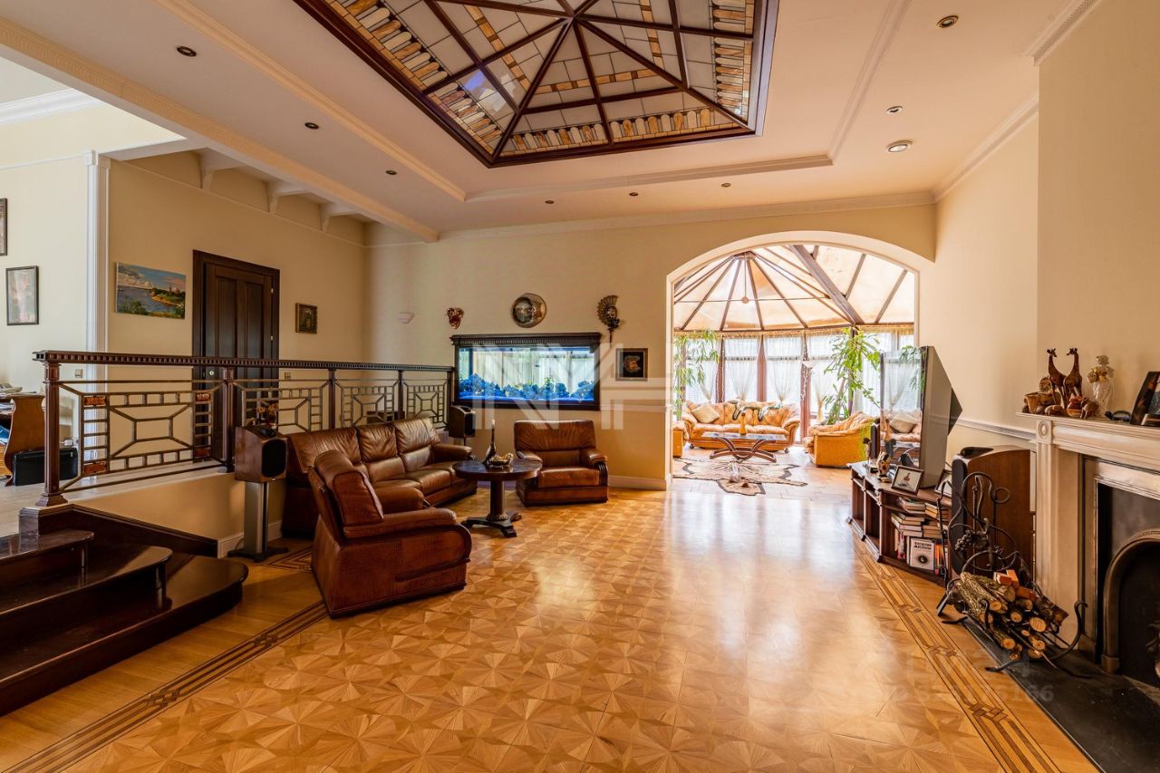 1626 Кирпичный дом с отделкой и мебелью 460 кв. м на участке 28 соток в охраняемом коттеджном поселке премиум-класса "Грибово". Коттеджный поселок расположен в д. Бородки, в 12 км от МКАД по Минскому шоссе. Московская область, Одинцовский городской округ. Ключевые особенности: просторный участок с лесными деревьями, центральные коммуникации, гараж на 2 автомобиля, терраса, зимний сад, камин в гостиной, развитая инфраструктура. Конструктив: дом построен полностью из кирпича, наружная отделка натуральный камень и штукатурка. Входная лестница с электрообогревом отделана гранитом. Фундамент — монолитная плита, перекрытия — монолитные, кровля — мягкая черепица, окна — деревянные стеклопакеты. В строительстве и отделке использовались дорогие и качественные материалы. Полы — паркет из ценных пород дерева, система "теплый пол" в зоне плитки (Италия), двери — массив (итальянский орех) Goroffoli. Дом меблирован, оснащен техникой и сантехникой ведущих европейских производителей. Спутниковое ТВ, интернет, сигнализация, видеонаблюдение. Коммуникации центральные: электричество 15 кВт, резервный генератор (11 кВт), отопление газовый котел De Dietrich. Планировка: верхний уровень: прихожая, гостевой с/у, холл, гостиная с камином, зимний сад, кухня-столовая, кабинет (спальня); отдельная зона спален: мастер-спальня со своим с/у, две спальни, большой c/у с ванной; нижний уровень: гараж, котельная, бильярдная, зона отдыха с баром и мини-кухней, тренажерный зал, кладовая, постирочная, с/у. Участок: 28 соток правильной формы с ландшафтным дизайном. На участке лесные, фруктовые и декоративные деревья и кустарники, пруд, вольер для собак. Вымощены дорожки, установлено фонарное освещение. Участок огорожен капитальным кирпичным забором, автоматические ворота. Инфраструктура внутренняя: коттеджный поселок премиум класса "Грибово" расположен в одном из лучших мест Подмосковья, внутри лесного массива. На территории поселка - живописное озеро, детские и спортивные площадки, прогулочные зоны с выходом в лес. Поселок с многоуровневой системой охраны и видеонаблюдением. Инфраструктура внешняя: рядом с поселком инфраструктура г. Одинцово и п. Лесной городок: торговые центры, кафе, рестораны, школы, детские сады, поликлиники, спортивные комплексы.