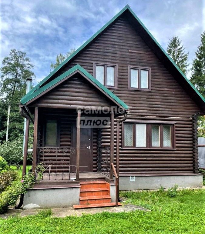 Первый этаж построен из оцилиндрованного бревна,