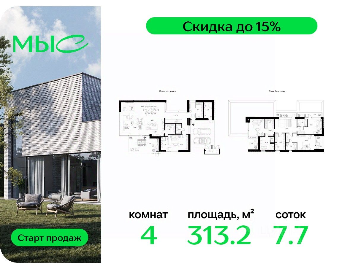 Продаётся загородный коттедж без отделки в семейном природном кластере премиум-класса МЫС. Срок сдачи: III кв. 2028.