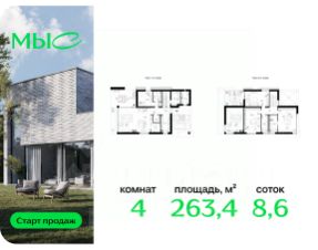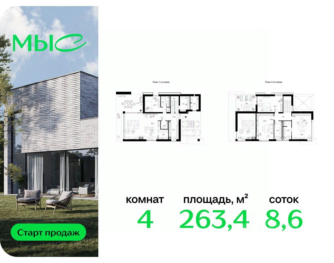 Продаётся загородный коттедж общей площадью 263.37 м² без отделки в семейном природном кластере премиум-класса МЫС. Срок сдачи: III кв. 2028.