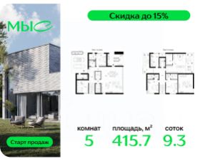 Прямая продажа от застройщика MR. Цена указана с учетом скидки 15%. Продаётся загородный коттедж без отделки в семейном природном кластере премиум-класса МЫС. Срок сдачи: III кв. 2028. Проект МЫС — это, прежде всего, идеальное место для семей. В рамках проекта построят государственную школу, два детских сада и дворец спорта площадью 20 000 м2 с термальным комплексом, выплывным бассейном, фитнес-залом, теннисными, сквош и падел кортами и секциями для детей. На территории площадью, сравнимой с тремя парками Зарядье, появятся кафе и рестораны, пруд с набережной, спортивные и детские площадки, скейт-парк, лыжные и веломаршруты. Расположение: - 2 минуты до скоростной трассы М1 и Минского шоссе; - 10 минут до МКАД; - 15 минут до МЦД Лесной Городок - 20 минут до делового центра "Москва-Сити"; - 28 минут до аэропорта "Внуково". Благоустройство: - велосипедные и лыжные маршруты; - собственная набережная и парк; - лаунж-зоны в окружении природы; - беседки у очага; - дворец спорта площадью 20 000 м²; - термальный комплекс с тремя бассейнами; - 4 теннисных и падел-корта; - 6 сквош-кортов; - многофункциональный спортзал; - скейт-парк; - просторная площадь для прогулок с фонтаном; - детский клуб с творческими секциями; - гастро-доминанта; - кафе у пруда, рестораны, ритейл. Окружение - соседство с лесным фондом; - школа на 1250 мест и 2 детских сада на 350 и 255 мест; - Дубковский и Подушкинский леса, парк "Рассказовка", Мещерский парк. Действуют специальные условия при 100% оплате, подробности уточняйте у менеджера в офисе продаж.
