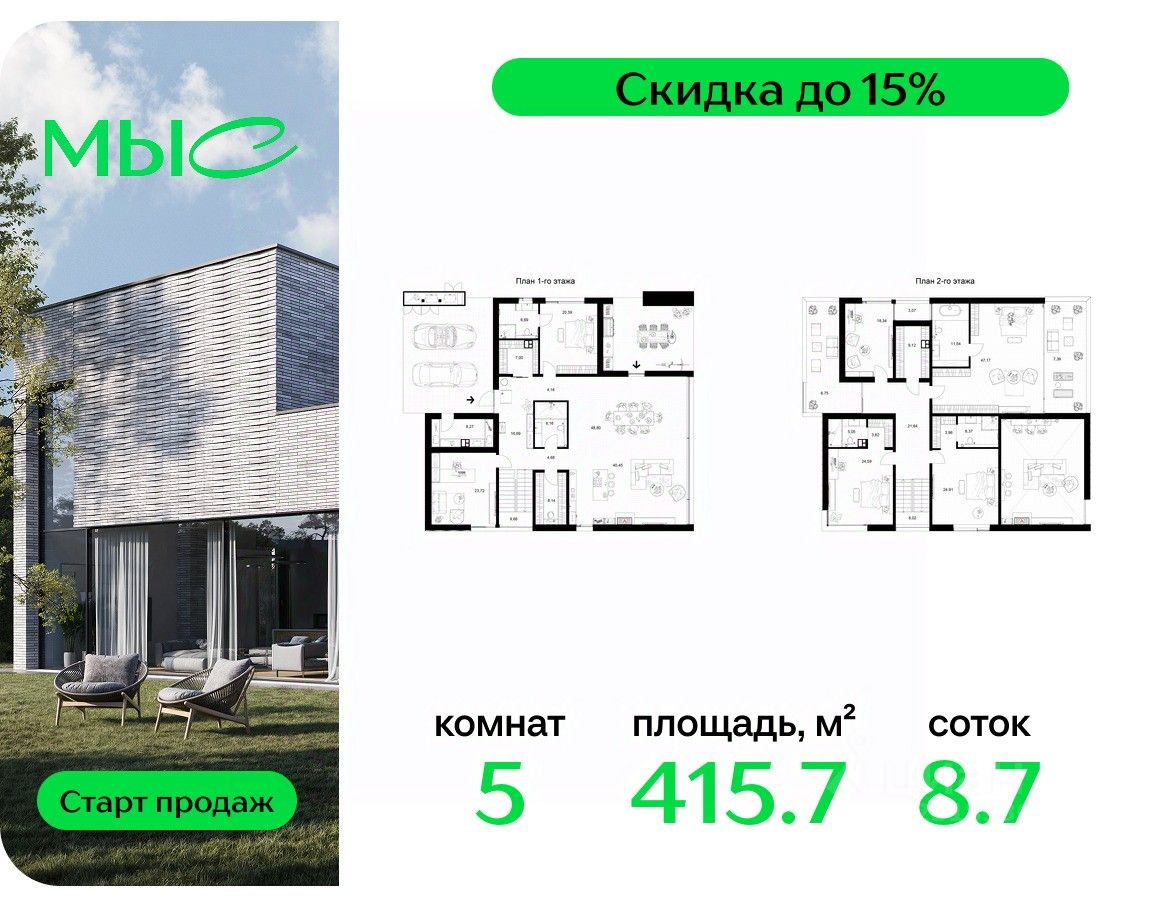 Прямая продажа от застройщика MR. Цена указана с учетом скидки 15%. Продаётся загородный коттедж без отделки в семейном природном кластере премиум-класса МЫС. Срок сдачи: III кв. 2028. Проект МЫС — это, прежде всего, идеальное место для семей. В рамках проекта построят государственную школу, два детских сада и дворец спорта площадью 20 000 м2 с термальным комплексом, выплывным бассейном, фитнес-залом, теннисными, сквош и падел кортами и секциями для детей. На территории площадью, сравнимой с тремя парками Зарядье, появятся кафе и рестораны, пруд с набережной, спортивные и детские площадки, скейт-парк, лыжные и веломаршруты. Расположение: - 2 минуты до скоростной трассы М1 и Минского шоссе; - 10 минут до МКАД; - 15 минут до МЦД Лесной Городок - 20 минут до делового центра "Москва-Сити"; - 28 минут до аэропорта "Внуково". Благоустройство: - велосипедные и лыжные маршруты; - собственная набережная и парк; - лаунж-зоны в окружении природы; - беседки у очага; - дворец спорта площадью 20 000 м²; - термальный комплекс с тремя бассейнами; - 4 теннисных и падел-корта; - 6 сквош-кортов; - многофункциональный спортзал; - скейт-парк; - просторная площадь для прогулок с фонтаном; - детский клуб с творческими секциями; - гастро-доминанта; - кафе у пруда, рестораны, ритейл. Окружение - соседство с лесным фондом; - школа на 1250 мест и 2 детских сада на 350 и 255 мест; - Дубковский и Подушкинский леса, парк "Рассказовка", Мещерский парк. Действуют специальные условия при 100% оплате, подробности уточняйте у менеджера в офисе продаж.