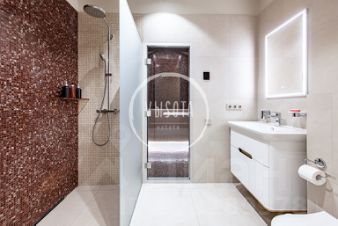 1-й этаж: гостиная с камином, кухня-столовая, кабинет, санузел, холл, кладовая, хаммам, котельная.