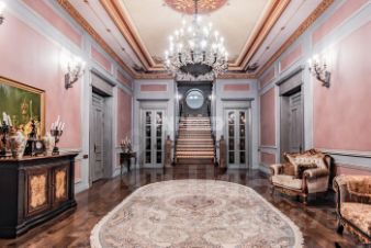 Фрески, росписи, холсты маслом в интерьере на стенах и потолках выполнены преподавателями Строгановки по канонам викторианской эпохи.