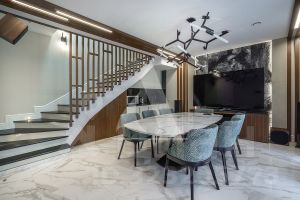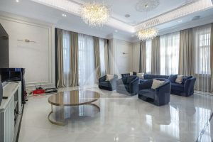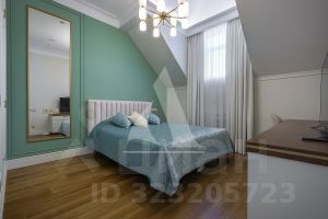 Участок благоустроен, выполнены ландшафтные работы. 1 этаж: холл, кухня-столовая-гостиная, гостевой с/у, терраса. 2 этаж: мастер-спальня с двумя гардеробными и собственной ванной комнатой, две спальни, два с/у, две гардеробные. Балкон. Мансарда: музыкальный салон, игровая, гардеробная. Гараж: отдельностоящий