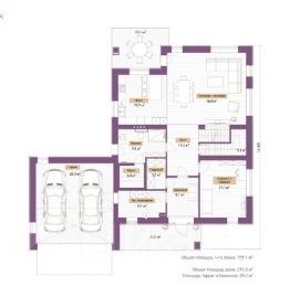 Внутреннее пространство представляет собой свободную планировку с панорамными окнами, высокими потолками до 4 метров, наполняющими пространство дома светом и воздухом, гаражом в контуре дома на 2 авто и просторной террасой для дружеских встреч.