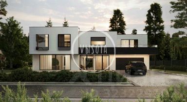 1-й этаж: холл, гардеробная, гостевой санузел, гостиная с камином, кухня-столовая с выходом на террасу, кладовая при кухне, спальня с санузлом, котельная, терраса, гараж на 2 мм.