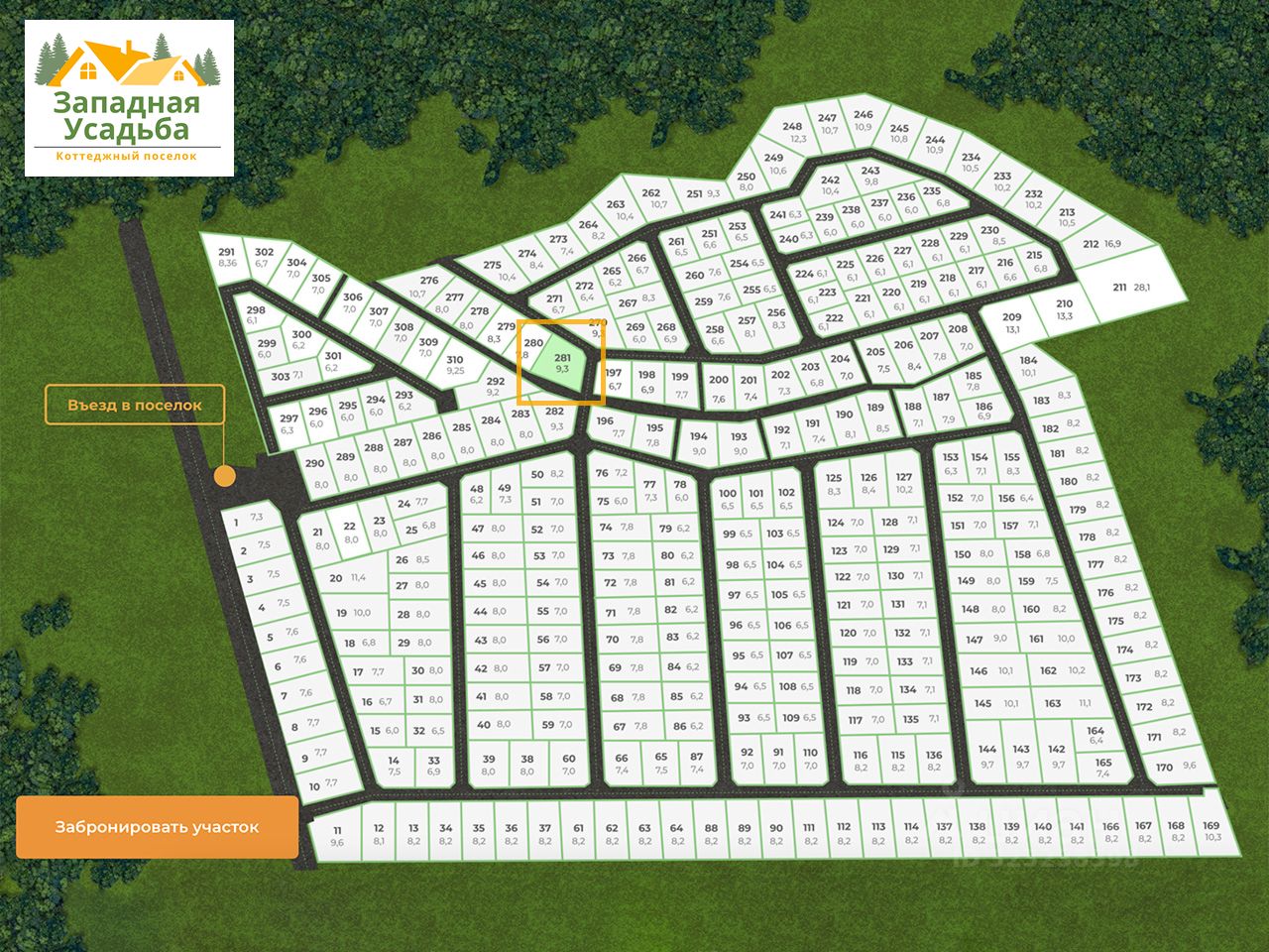ИЖС, площадь - 9,3 соток, номер участка на плане - 281