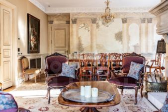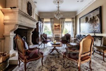 Минеральная колористика стен, антикварные люстры из Парижа, мебель Arthur Brett и Mark Wilkinson — каждая деталь становится частью повествования о вечности и прекрасном. Ощущение непрерывного течения времени проявляется в диалоге между историческими артефактами и современными элементами, создавая живой, дышащий интерьер.