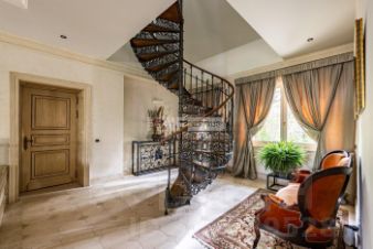 - цокольный этаж с полноценными окнами в зоне бассейна и спа (за счет ландшафта), включает в себя так же кинозал, зону отдыха при спа, сауну, турецкий хамам, массажную, а так же служебные помещения и зоны хранения, в том числе сейфовую комнату и помещение для хранения шуб.