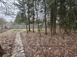 На участке сосны, клены, берёзы липы, дубы. Фруктовый сад - яблони, сливы, смородина.