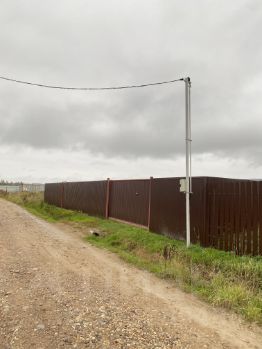 Участок огорожен забором, откатные ворота, калитка. Высадили 12 туй. На участке артезианская скважина 100м глубиной, выгребная яма. Так же остается блок контейнер утепленный, для проживания строителей.