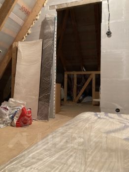 Второй этаж- мансарда ( свободная планировка- выведено электричество,планировался санузел и две спальни ) Напольное покрытие - ламинат; лестница на второй этаж - сосна !