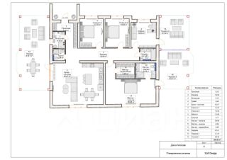Планировка одноэтажного дома очень удобная и функциональная, просторная кухня-гостиная с выходом на террасу, мастер-спальня с гардеробной, санузлом и собственным выходом на террасу, две спальни, кабинет также с выходом на террасу. Все коммуникации заведены в дом.