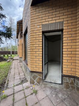 С внутренней стороны отдельный выход во дворик для зоны барбекю, можно огораживать забором. Посажены туи. Можно устанавливать навес, перголу.