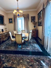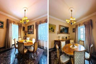 1 этаж: прихожая, гардеробная, холл, гостиная с камином, кухня, столовая, гостевой санузел. Мансарда: 3 спальни, 2 санузла, гардеробная.