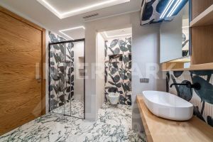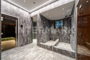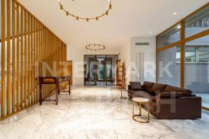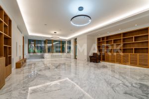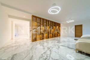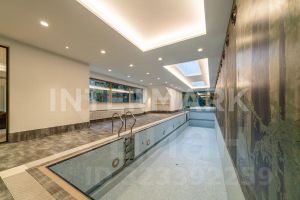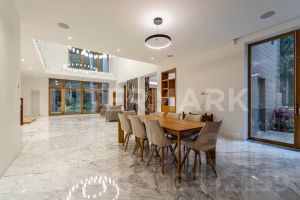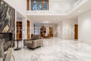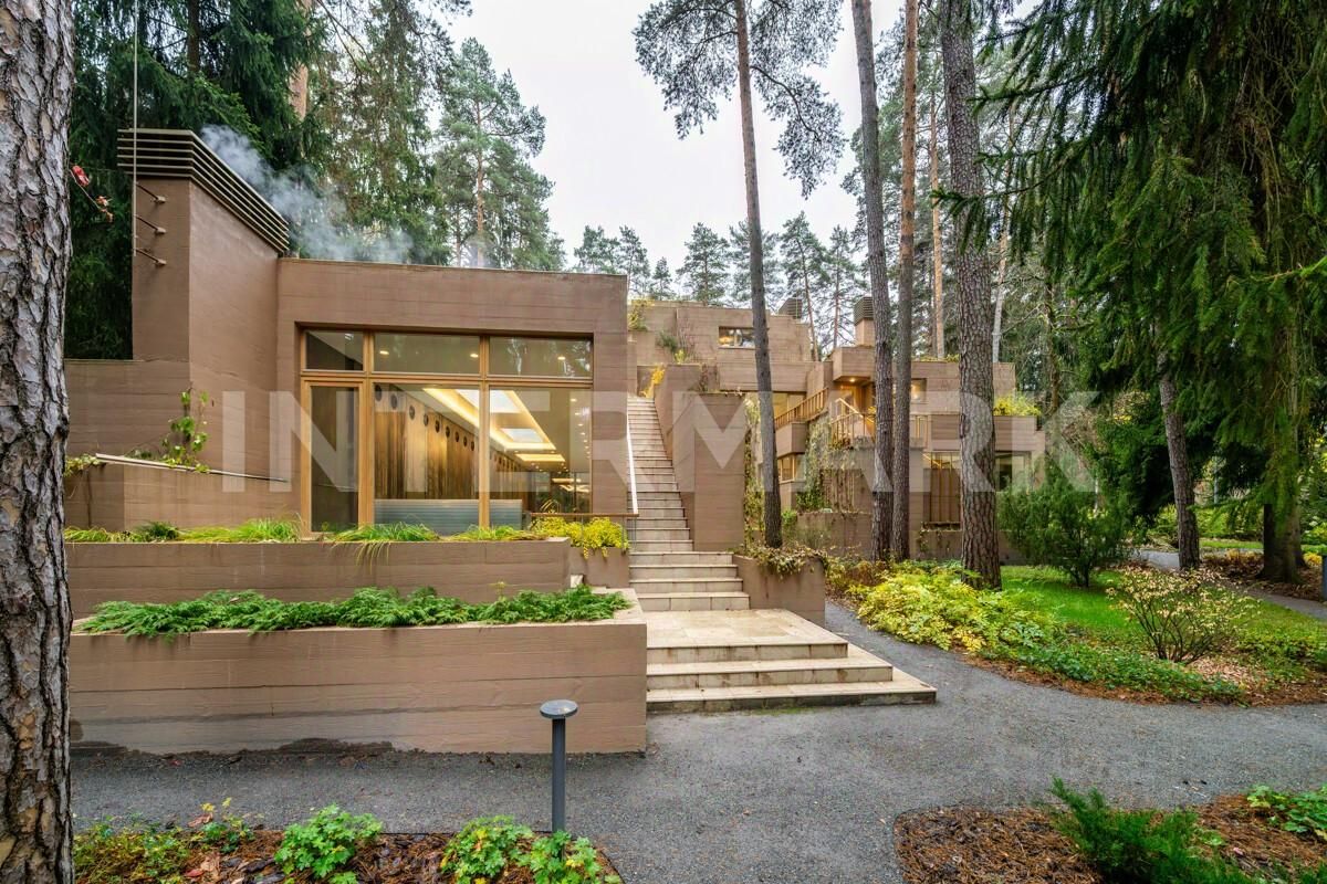 Лот 8181. Сосны-1. Дом полностью готов к проживанию. Предлагаем приобрести дом в КП Сосны-1. Коттеджный поселок расположен на Рублево-Успенском шоссе в 24 км от МКАД. Общая площадь дома 1414 кв.м. В доме выполнена отделка под ключ. Планировочным решением предусмотрено 3 этажа, 4 уровня, 6 спален. Планировка дома: цоколь - сезонная гардеробная, кинотеатр; 1 уровень - кухня-столовая с панорамными окнами, 2 зоны гостиной с двусторонним камином, кабинет с камином и с/у, гостевая спальня с с/у, spa-зона с бассейном, хаммамом и финской сауной; 2 уровень - 2 блока по 2 спальни с гардеробными и с/у, мастер-спальня с камином, большой гардеробной и c/у; 3 уровень - зимний сад, кабинет, с/у. Дом расположен на участке общей площадью 90 соток. Территория благоустроена:  есть ландшафтный дизайн.Участок лесной. Помимо основного дома на участке расположены: гостевой дом. Дом оборудован комфортной SPA-зоной с бассейном и сауной. В коттеджном поселке Сосны-1 современные инженерные коммуникации: газоснабжение - магистральное, выделенная мощность электричества 60 Квт, водоснабжение - централизованное, канализация - центральная. В КП круглосуточная охрана.
