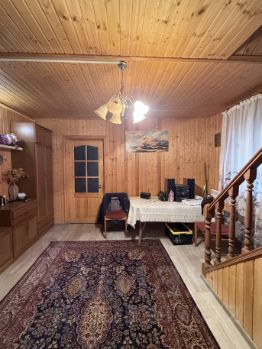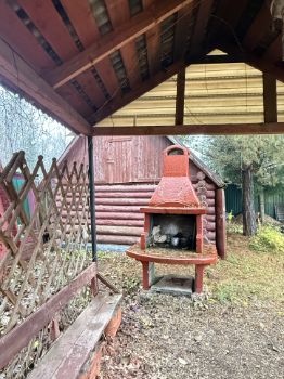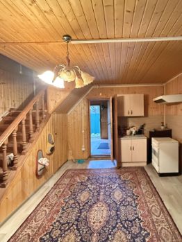 Дом 2- х этажный , фундамент ленточный, стены из бруса , снаружи сайдинг. В доме на 1 этаже гостевая комната с камином,1 спальня, кухня, санузел. На 2 этаже 1 спальня, кабинет . На территории есть 2 отдельно стоящие бани, гараж для одного автомобиля. Участок ухоженный, есть плодовые деревья и кустарники, теплица , грядки.