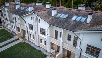 Таунхаус имеет площадь 216,4 кв.м., высокие потолки 3,3 м., 6 комнат, подсобные помещения, санузлы, котельную. Централизованная подача воды и канализация. Теплом обеспечивает надежный газовый котел марки Buderus. Таунхаус продается без отделки, что дает возможность владельцам возможность осуществить ремонт по собственному вкусу.