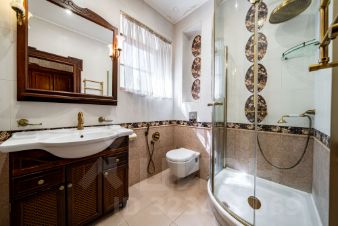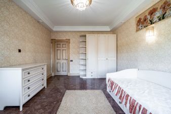 В основном доме 4 спальни: жилая комната с собственным сан.узлом на первом этаже и 2 детские комнаты и приватное мастер пространство, мастер-спальню, гардеробную, уборную, просторный кабинет с выходом в зимний сад и на открытую террасу - на втором этаже.