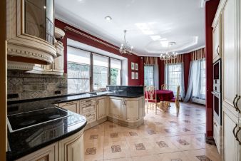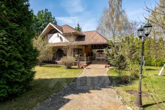 Жилой дом в элитном камерном коттеджном поселке. Участок с полностью сформированным ландшафтом: на участке растут различные деревья: лиственные, хвойники, декоративные кустарники, разбит плодоносящий сад; реализовано освещение и система автоматического полива; имеются полноценные дренажные системы. В гостевом доме площадью 87 кв.м на первом этаже находится патио с мангальной зоной, теплая гостиная с камином; на втором этаже - двухкомнатная квартира.