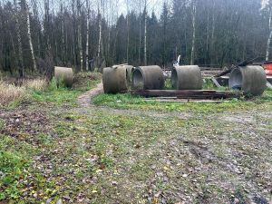 На участке есть фундамент  9мх9м, очень качественный (стоимость фундамента 1350000 руб.), геометрия соблюдена, есть чеки на покупку материала. Есть проект дома РИГА. Проведены закладные в фундаменте для электричества и воды. Сделан теплый водяной пол, вокруг фундамента сделан дренаж. Вырыты колодцы для канализации и ливневой канализации, на участке  небольшое количество цементных блоков, вагончик, кольца.