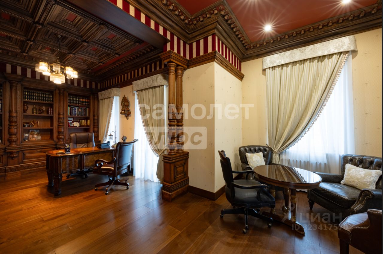 На первом этаже: холл, кухня-столовая, с/у, постирочная. На втором этаже: холл, переговорная, 2 кабинета, с/у. На третьем этаже: 3 комнаты, с/у. На 4 этаже: уютная гостиная с камином, 2 мастер спальни. Планировкой предусмотрено несколько рабочих кабинетов, где можно организовать рабочую зону и пространство под библиотеку.