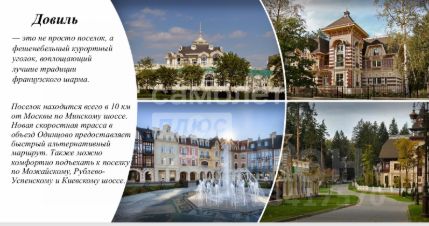 Довиль — это не просто камерный поселок, а фешенебельный курортный уголок, воплощающий лучшие традиции французского шарма. Поселок находится всего в 10 км от Москвы по Минскому шоссе.