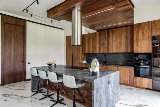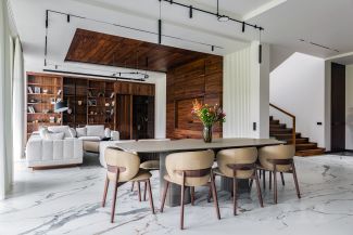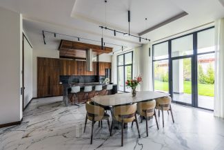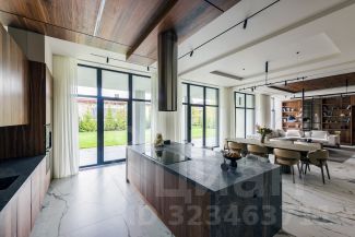 Современный дом 700 м² с мебелью в коттеджном посёлке Madison Park Новорижское ш., 24 км от МКАД | Участок 17 соток | 5 спален | Архитектура и стиль Элегантная резиденция, выполненная в современной архитектуре с чистыми линиями и продуманными пропорциями. Фасады оформлены в естественной палитре с использованием штукатурки, дерева и кирпича, а крупное панорамное остекление и плоская кровля подчёркивают актуальный архитектурный язык. Интерьеры и оснащение Дизайн интерьера выдержан в минималистичной эстетике — спокойные натуральные оттенки, тёплые текстуры дерева, высококачественные материалы. Продуманное освещение и продольные рейки на стенах создают атмосферу лёгкости и спокойствия. Гостиная с большой диванной зоной объединена визуально с природой за счёт панорамных окон — пространство идеально подходит как для семейного отдыха, так и для приёма гостей. В доме предусмотрена SPA-зона премиального уровня: - бассейн с панорамным остеклением - зона релакса - сауна - можжевеловое панно Эта часть дома интегрирована в ландшафт, благодаря чему создаётся эффект частной курортной резиденции. Дом меблирован современной встроенной и корпусной мебелью, полностью готов к проживанию. Планировка 1 этаж: прихожая, гардеробная, гостевой с/у основная кухня и отдельная рабочая кухня просторная гостиная с выходом на террасу спальня с гардеробной и собственным с/у бассейн, сауна, зона отдыха, санузел технические помещения 2 этаж: 4 спальни, каждая с гардеробной и индивидуальным санузлом постирочная терраса Участок и благоустройство Площадь участка — 16,5 соток. Ровная территория, выверенный ландшафт с хвойными посадками по периметру, создающими приватность и зелёную рамку участка. Аккуратный газон, лаконичные садовые элементы и аккуратная подсветка — эстетика современного загородного дома. О посёлке Madison Park Закрытый камерный поселок класса De Luxe с идеальной организацией пространства и эстетикой городского парка. - центральный бульвар с беседками, цветниками и прогулочными дорожками - рукотворное озеро с благоустроенными берегами - видеонаблюдение, КПП и круглосуточная охрана - единая архитектурная концепция Посёлок является частью Villagio Estate, что обеспечивает доступ к развитой инфраструктуре высокого уровня: - престижные частные школы и детские сады — 10 минут на автомобиле - рестораны высокой кухни, фитнес-клубы, SPA-центры - торговые галереи и сервисы для жизни Преимущества дом полностью готов к проживанию современный дизайн и мебель полноценный SPA-комплекс панорамное остекление, тёплый свет и приватность