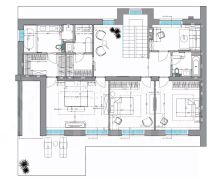 2 этаж - холл, мастер-спальня с гардеробной, санузлом и выходом на террасу, две спальни, санузел, кабинет с балконом, постирочная-гардеробная.