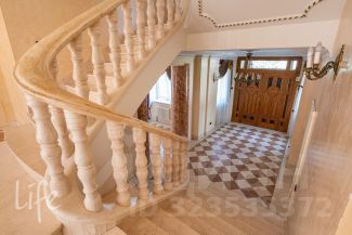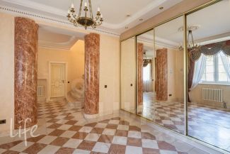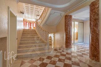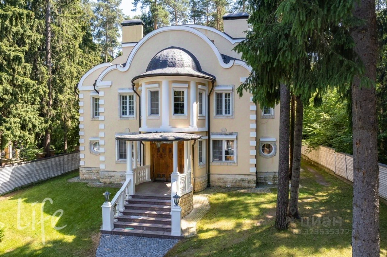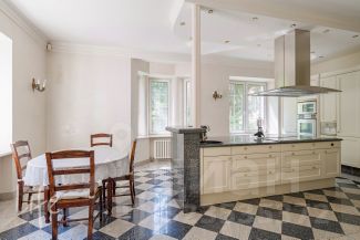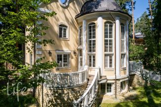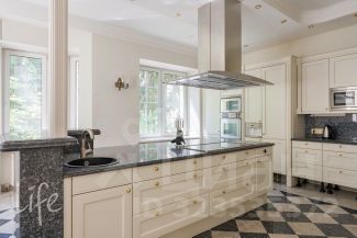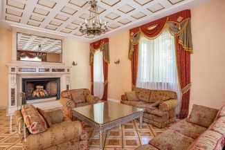 Элитный коттеджный поселок "Никологорский", Николина гора. Дом жилой, полностью под ключ, меблирован и оборудован всей необходимой техникой. После косметического ремонта. Интерьер в классическом стиле, венецианская штукатурка, полы — мрамор и наборный паркет, лестница — мрамор, коллекционная мебель (Швейцария). Гостиная со вторым светом, украшена дровяным камином. Много окон, очень светло.