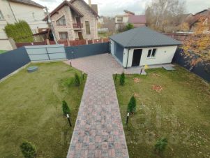 Ухоженный участок с прекрасным газоном, отдельно стоящий гараж, вымощены дорожки и площадка под парковку, освещение.