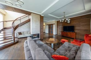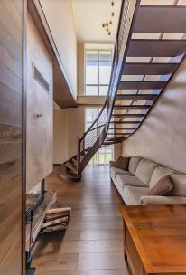 Современный классический стиль отделки ( двери и лестница массив дерева, теплые водяные полы, конвекторы, широкоформатные окна в пол, паркетная доска)