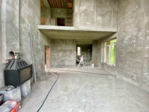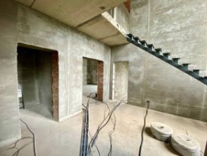 Здание имеет презентабельный внешний вид благодаря декоративной фасадной штукатурке. В доме прохладно в жару и соответственно тепло в холодное время года. Панорамные окна дают много света. Внутренние помещения готовы к чистовой отделке — выполнены черновые работы, стены выровнены штукатуркой.