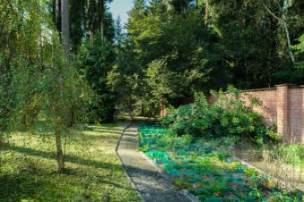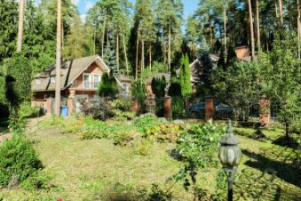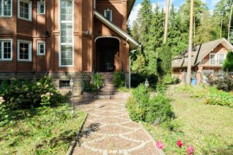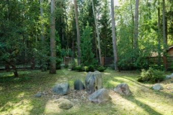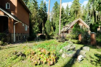 29,5 соток +20 соток аренда леса с вековыми лесными деревьями, ровный, с ландшафтным дизайном, высажен газон, садовые, декоративные и лесные деревья. Со всех сторон участок огорожен забором, расположен на тупиковой улице, парковка на 6 а/м, ворота автоматические, отдельно стоящий гараж с квартирой для персонала, цокольный этаж с дополнительными помещениями. На участке беседка, гостевая веранда, зона барбекю, хозблок, лесная зона.